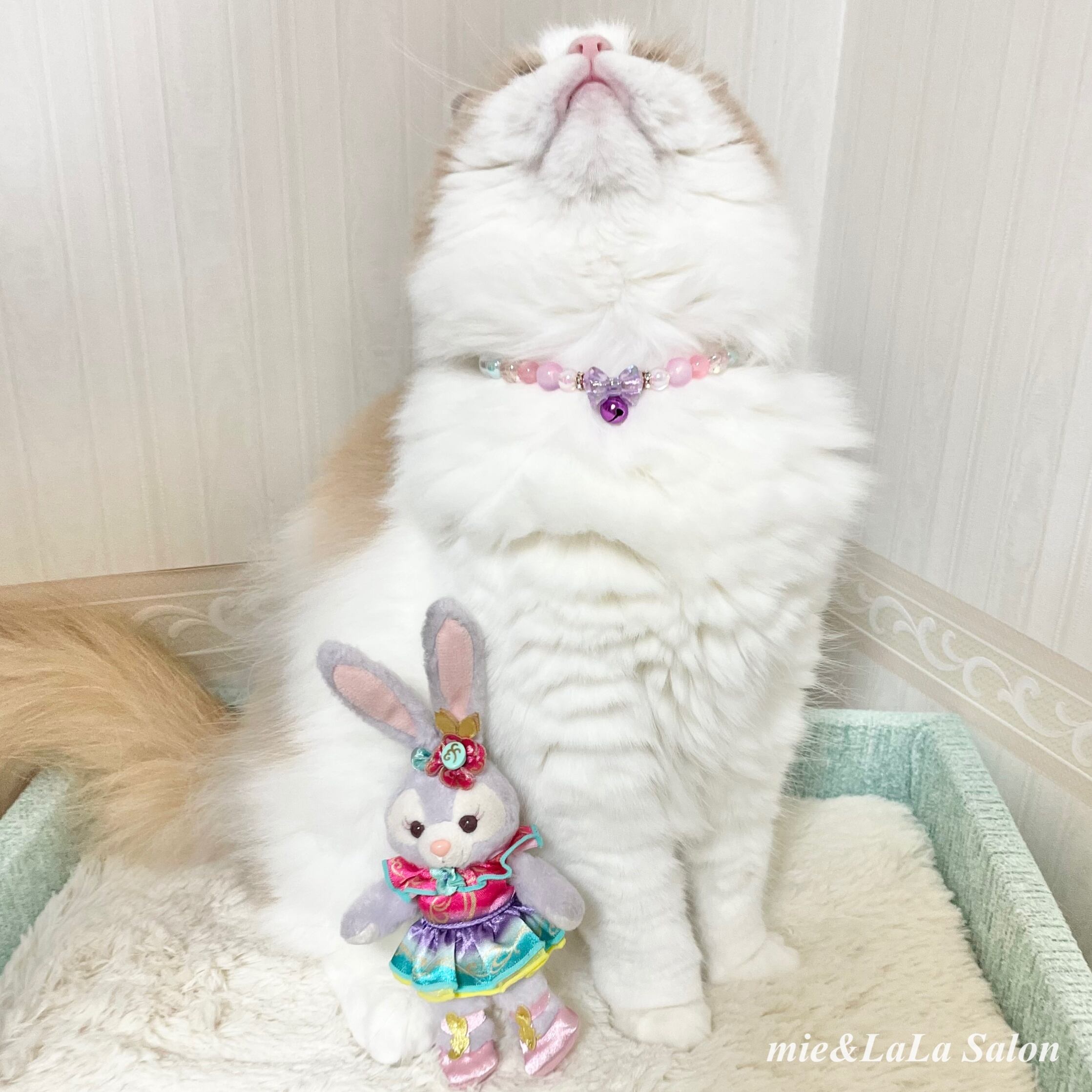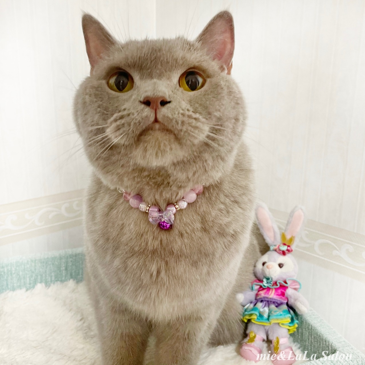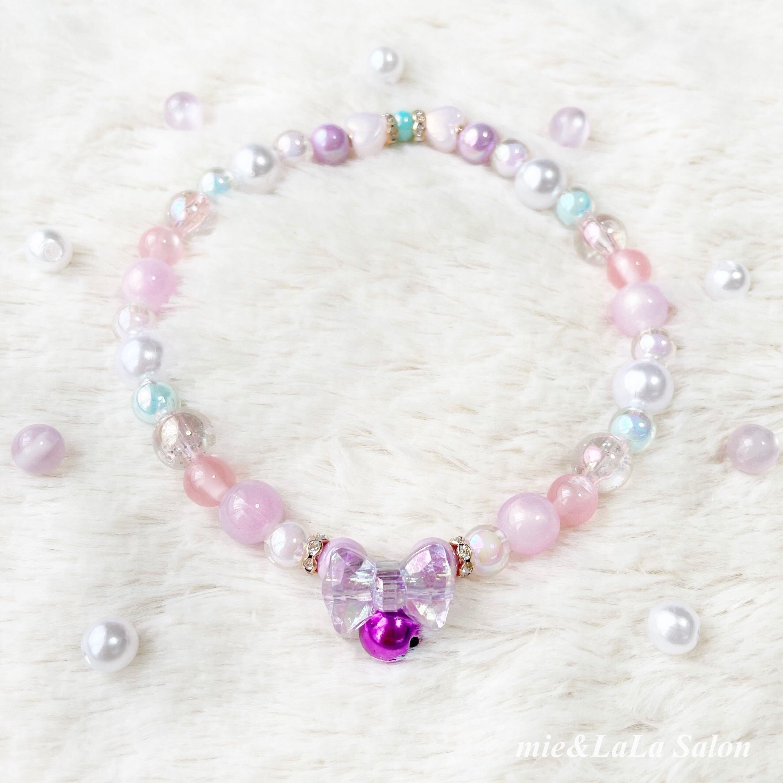 ペット用ピンクパープルリボンネックレス(バックリボン付き)