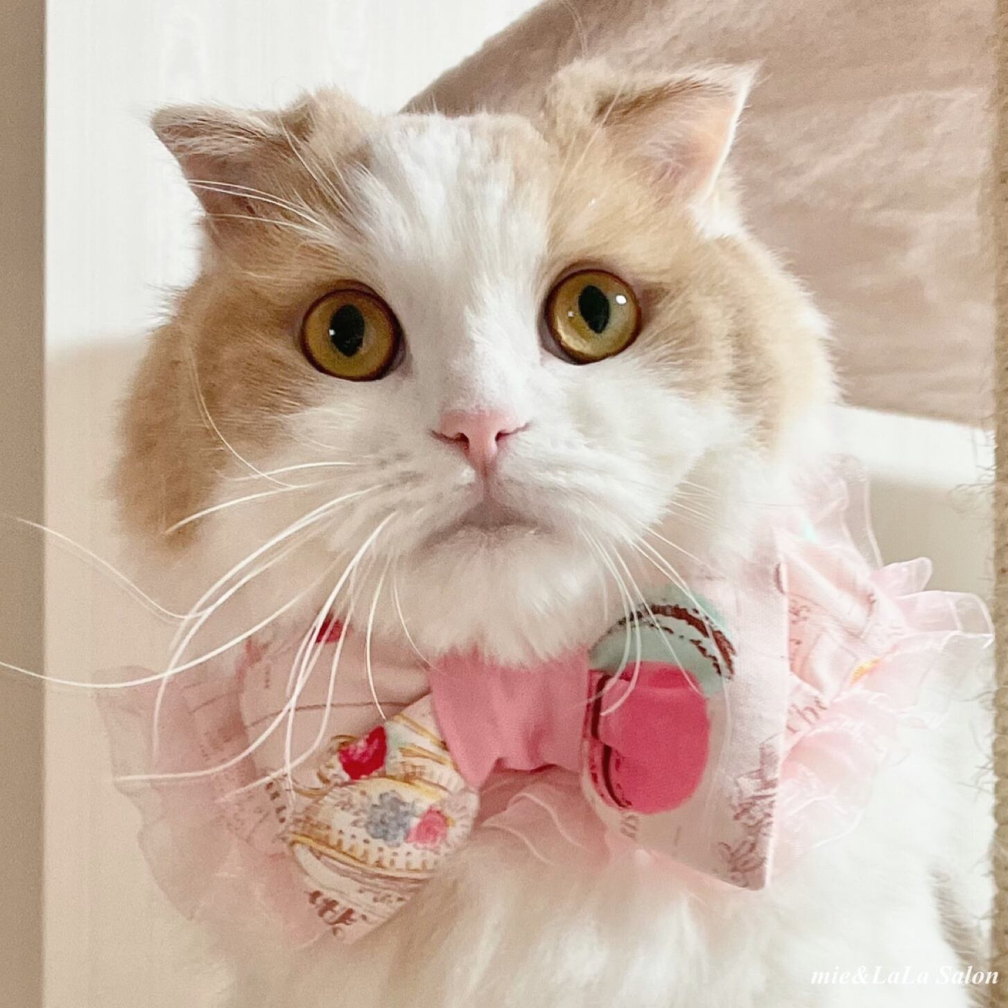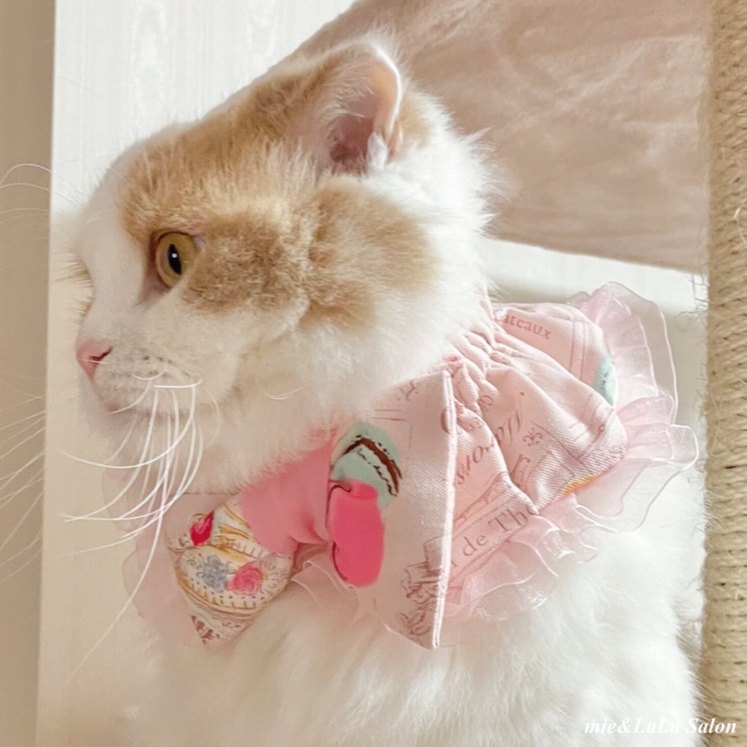 ペット用スイーツフリルビッグリボンシュシュ首輪୨୧