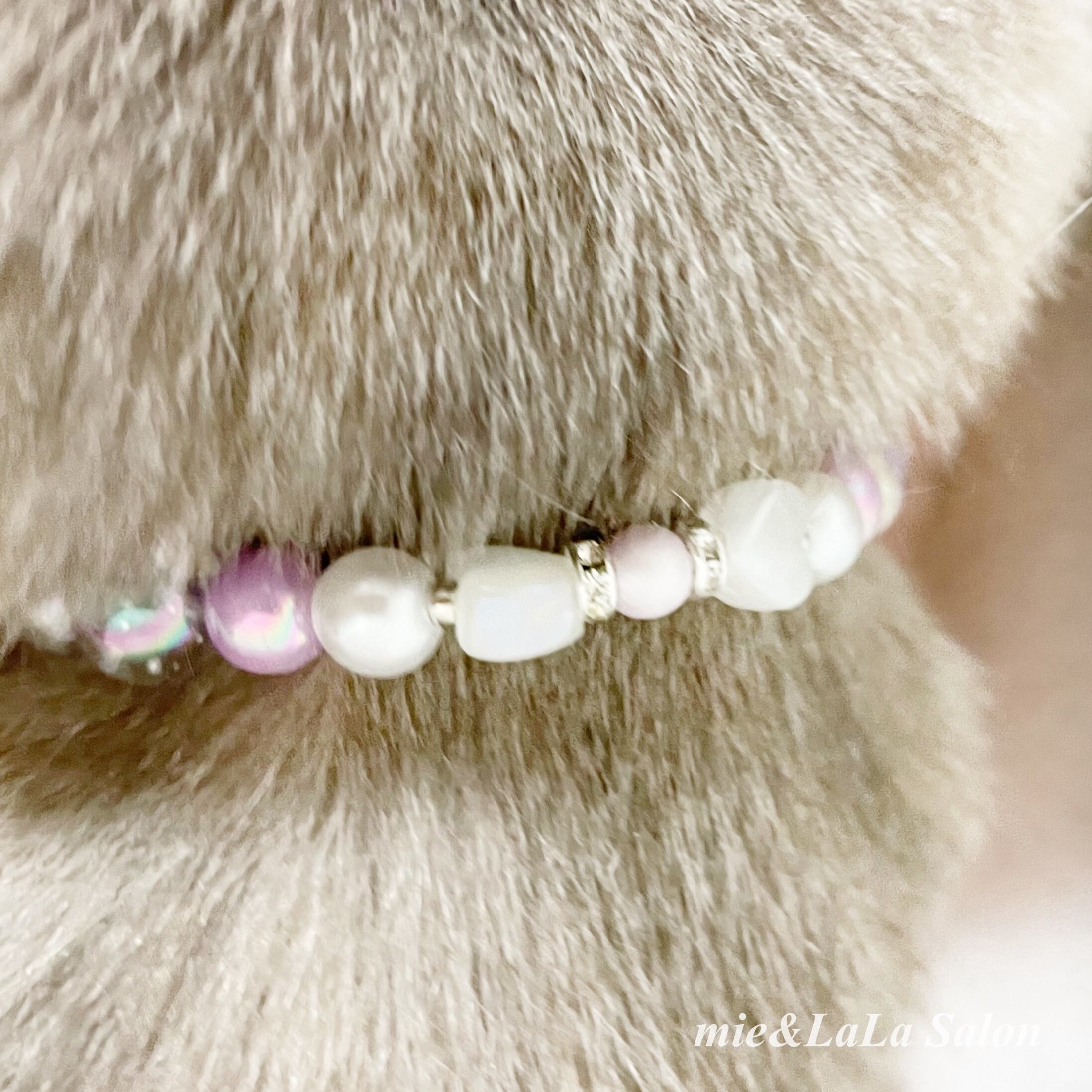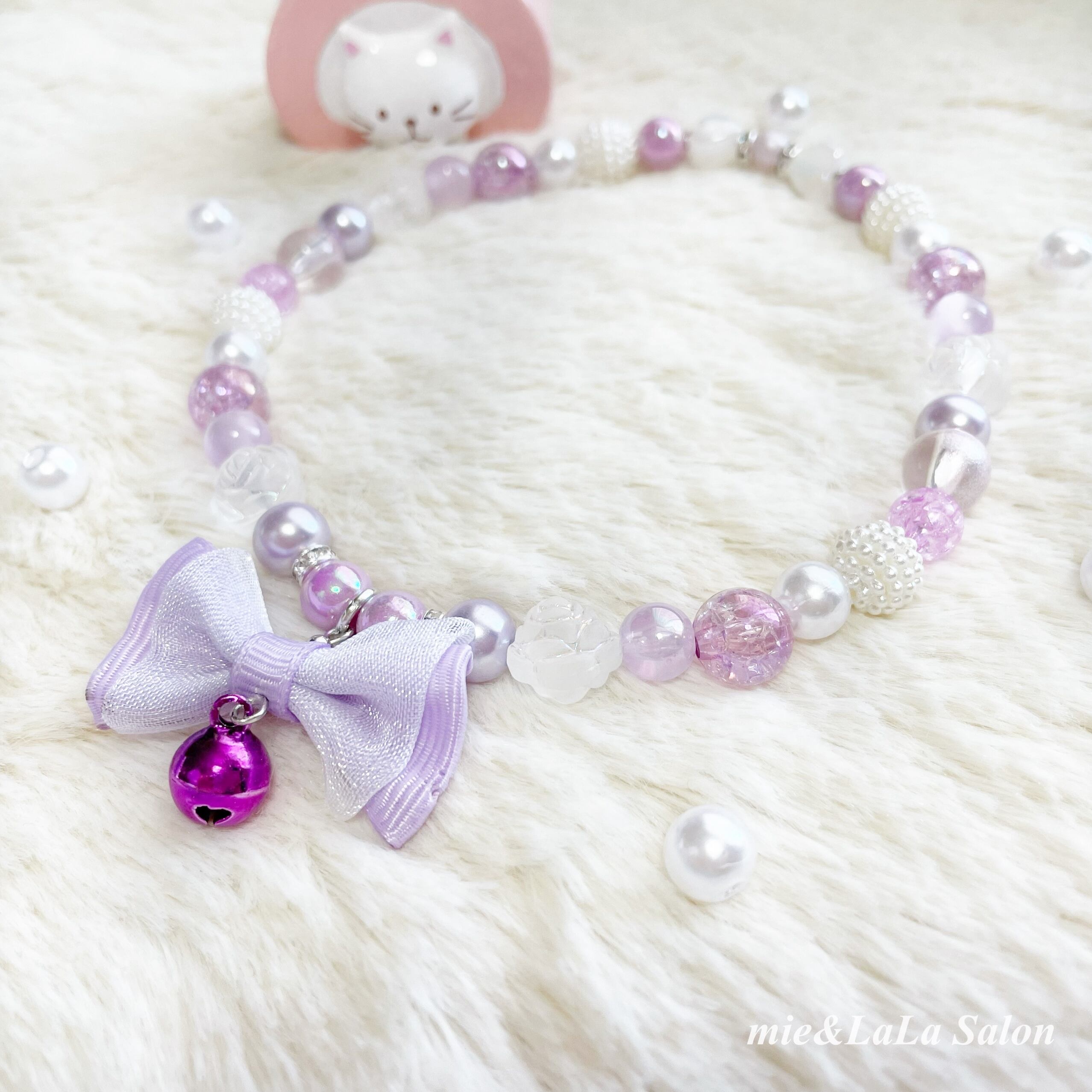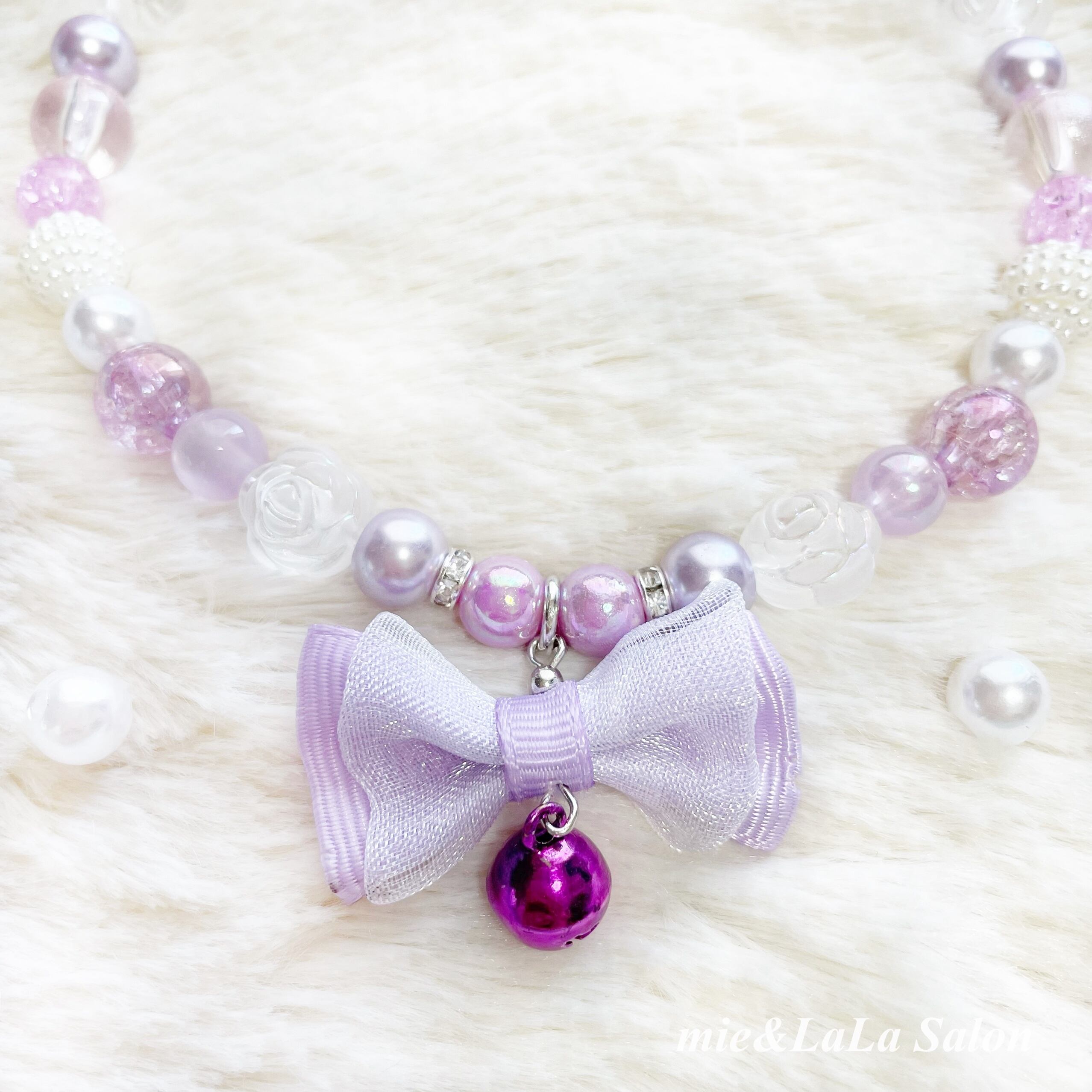 ペット用パープルレースリボンネックレス(バックリボン付き)