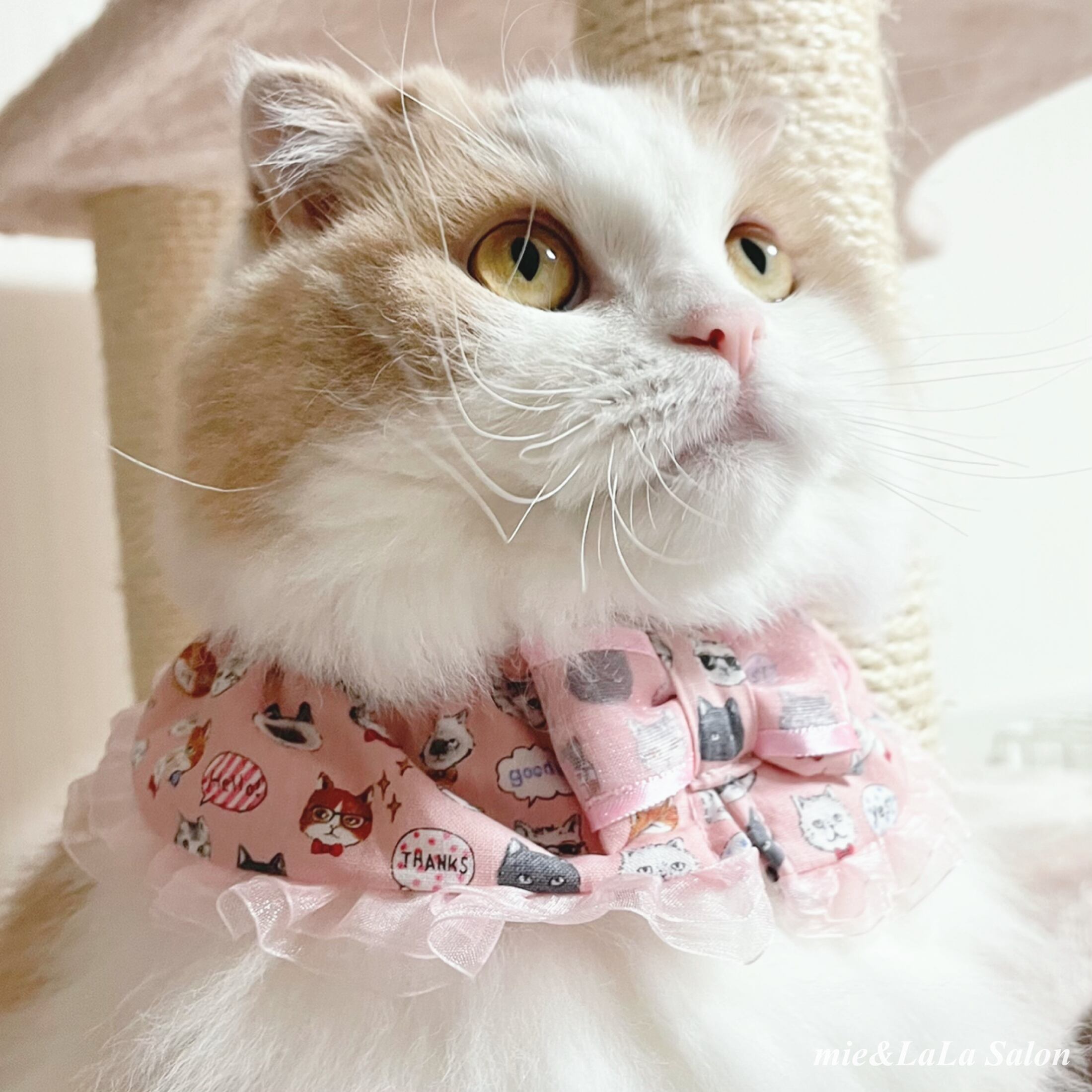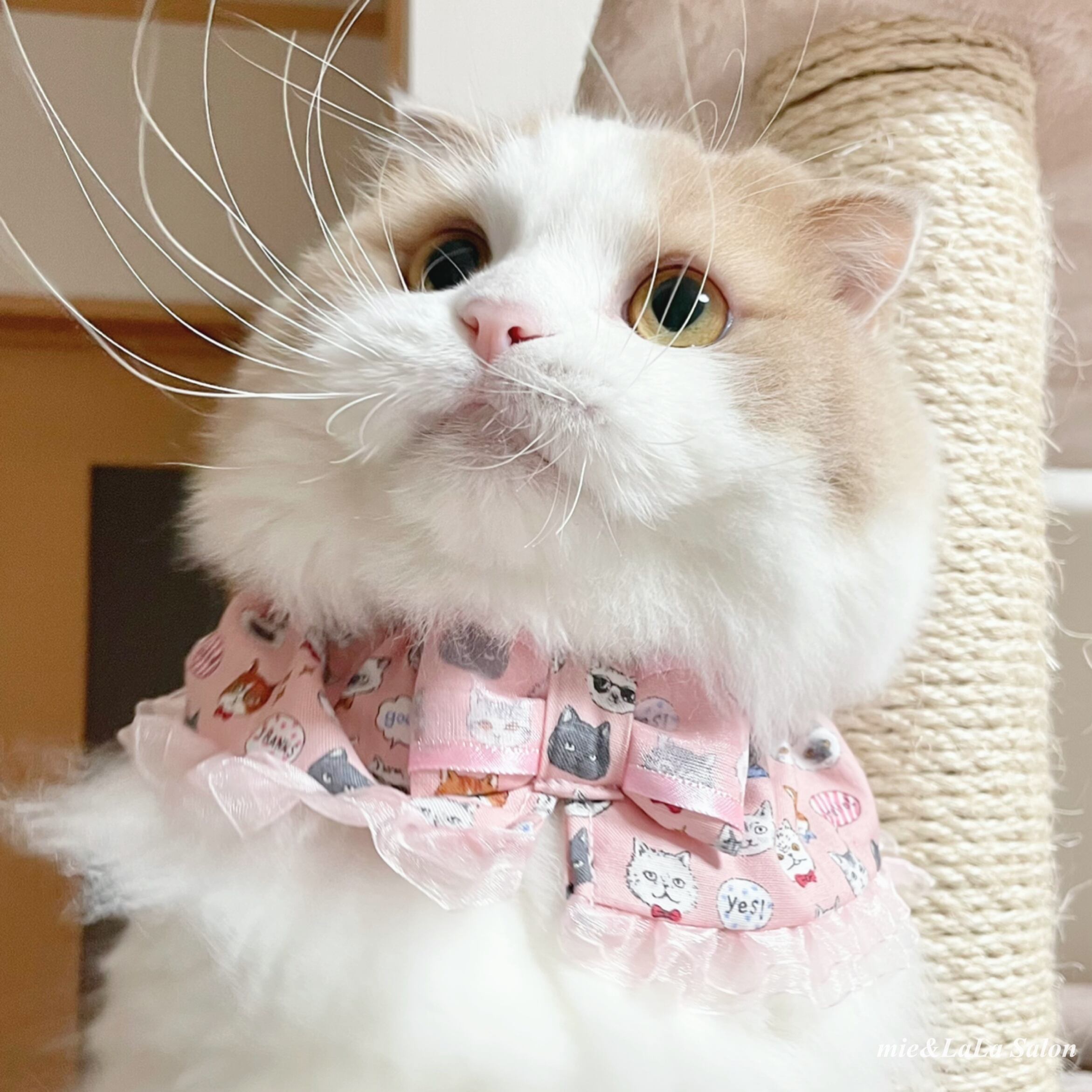 ペット用にゃんこ柄襟シュシュ首輪₍˄·͈༝·͈˄₎
