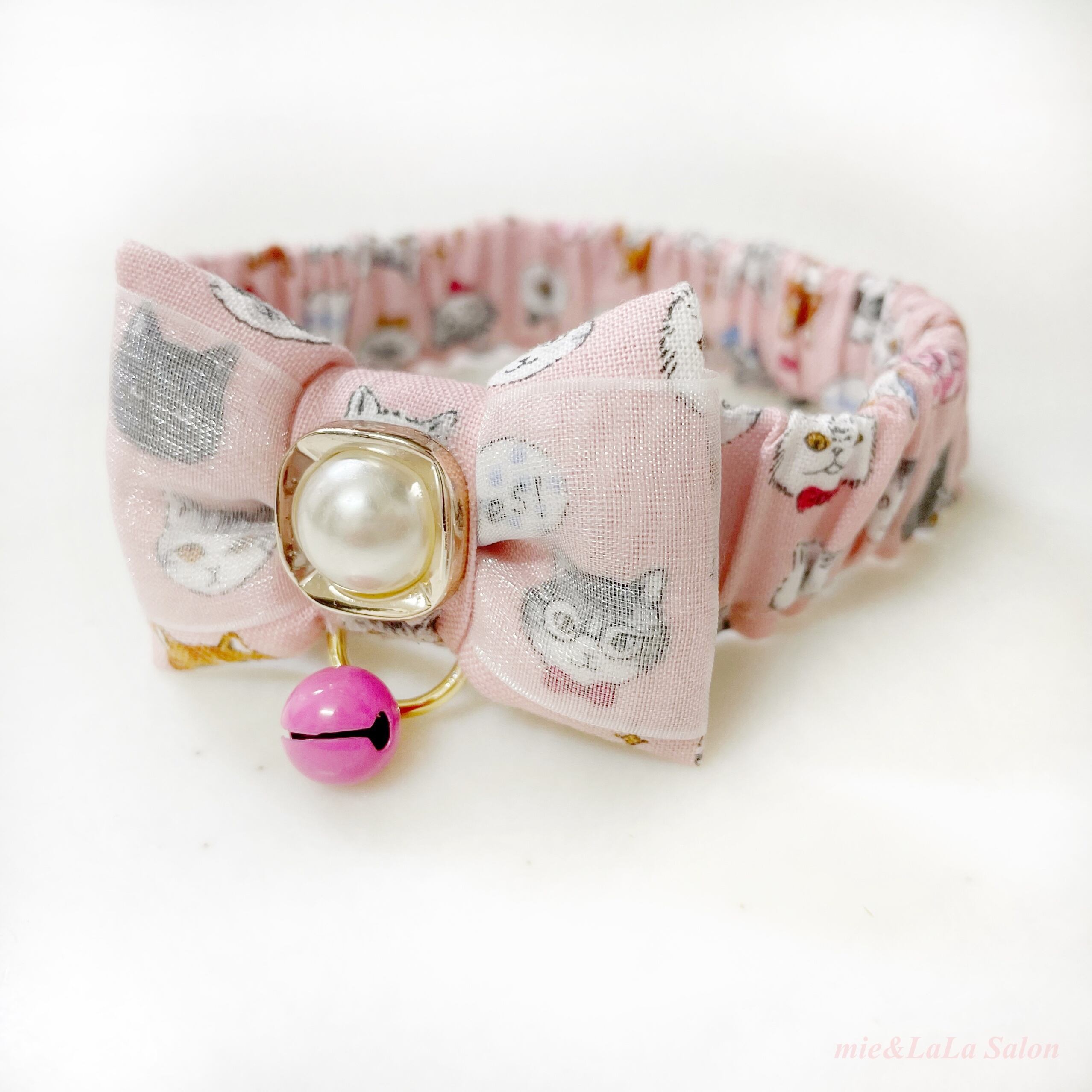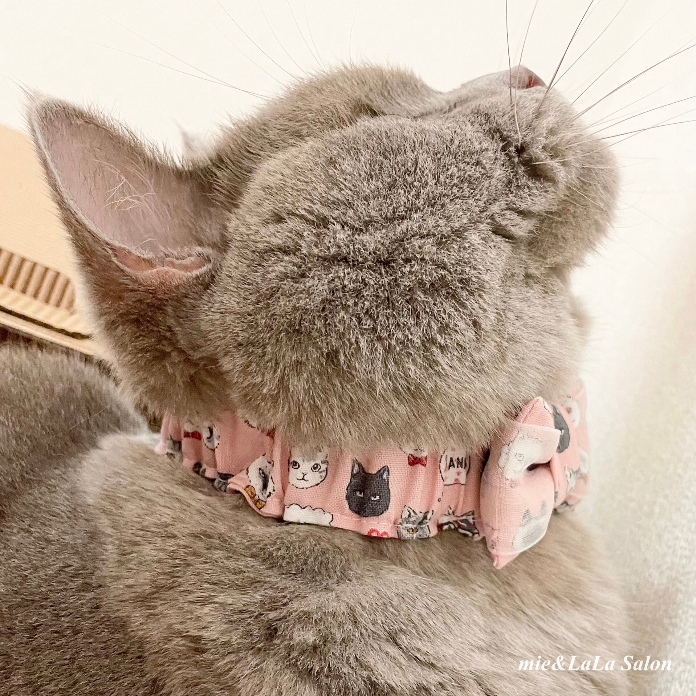 ペット用にゃんこ柄スリムシュシュ首輪 ピンク
