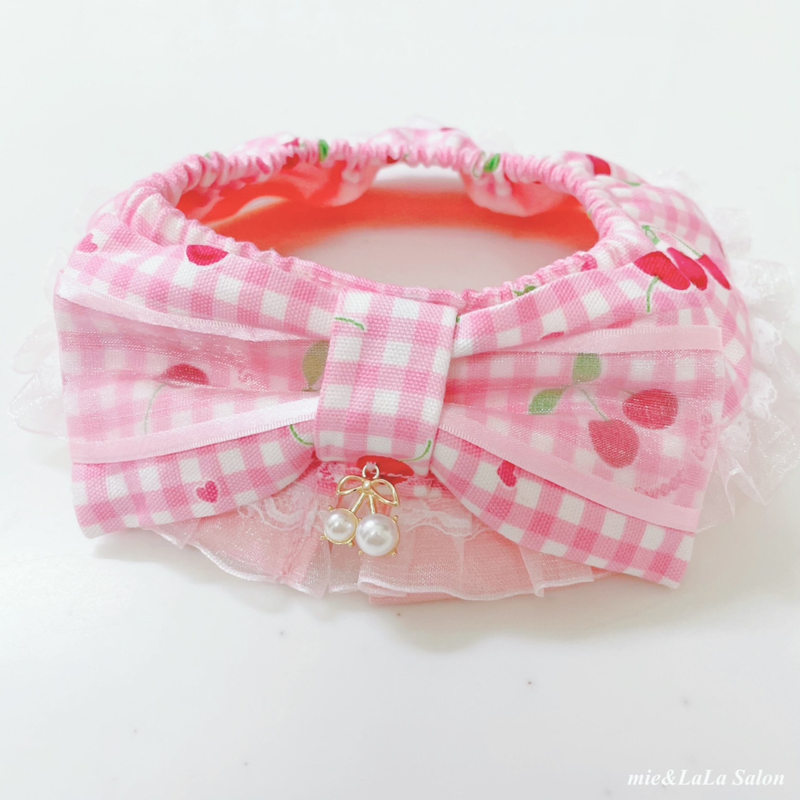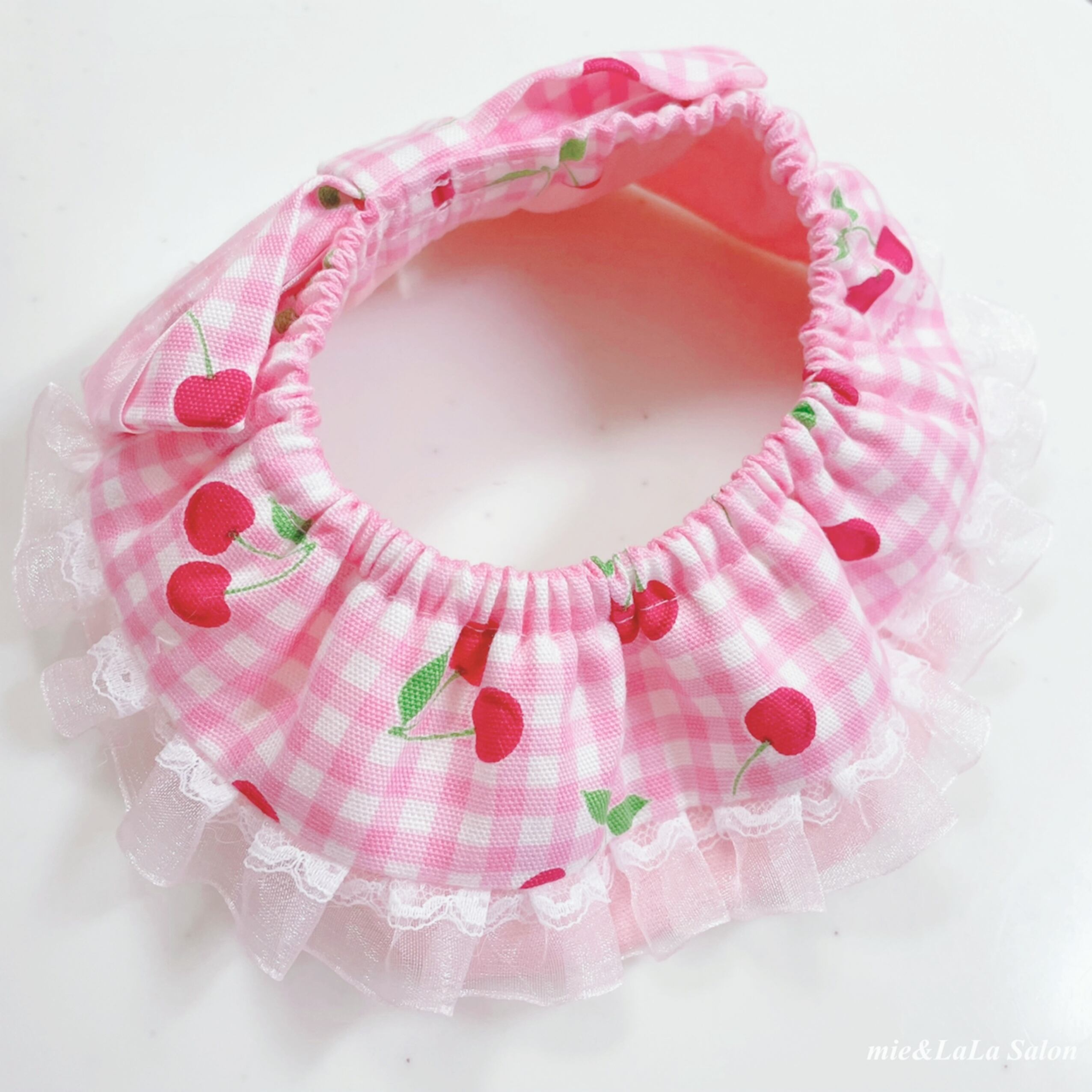 ペット用チェリーフリル襟シュシュ首輪୨୧