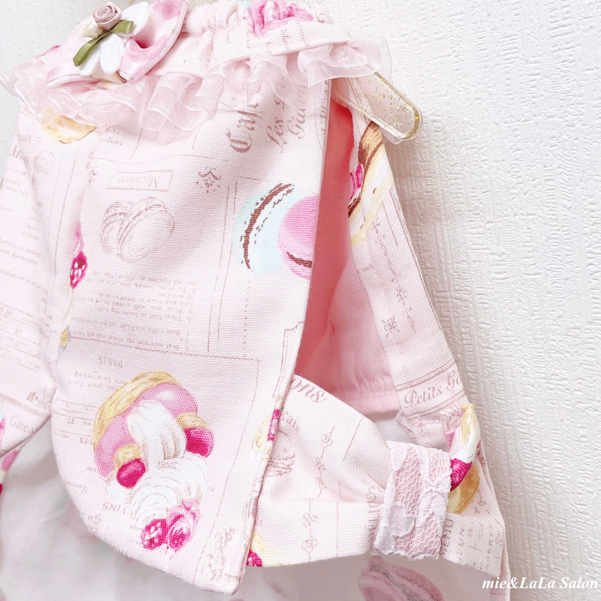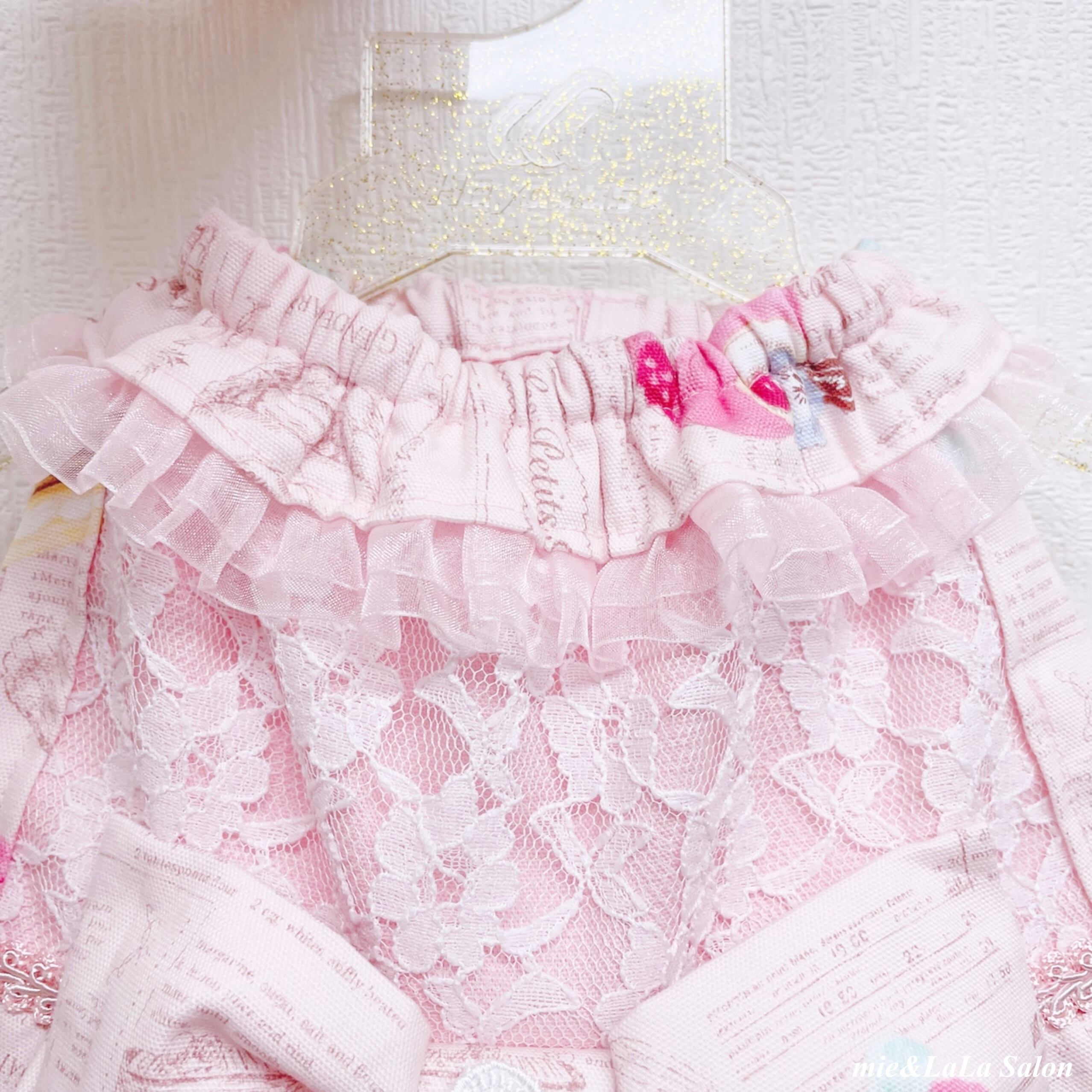 全体的にフリルレース、前後左右にリボンを付けて、キュートなデザインにいたしました୨୧