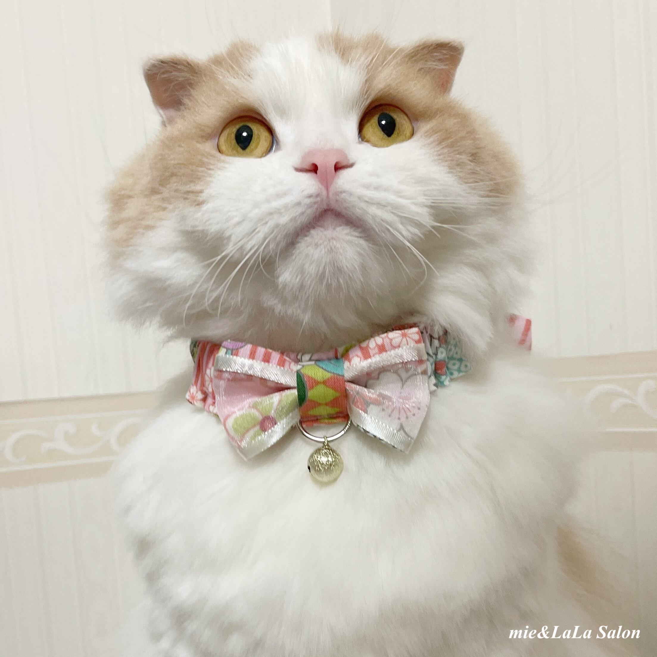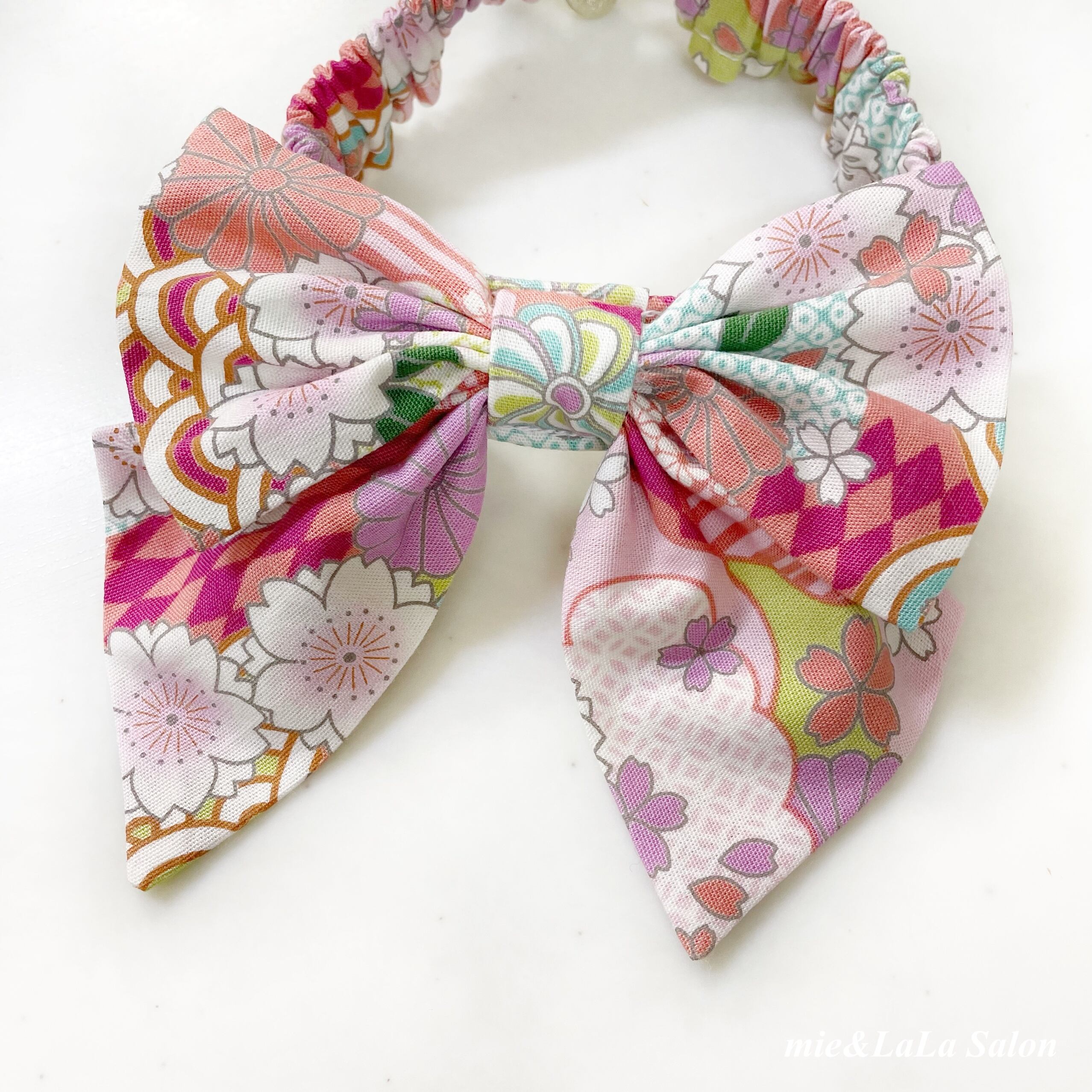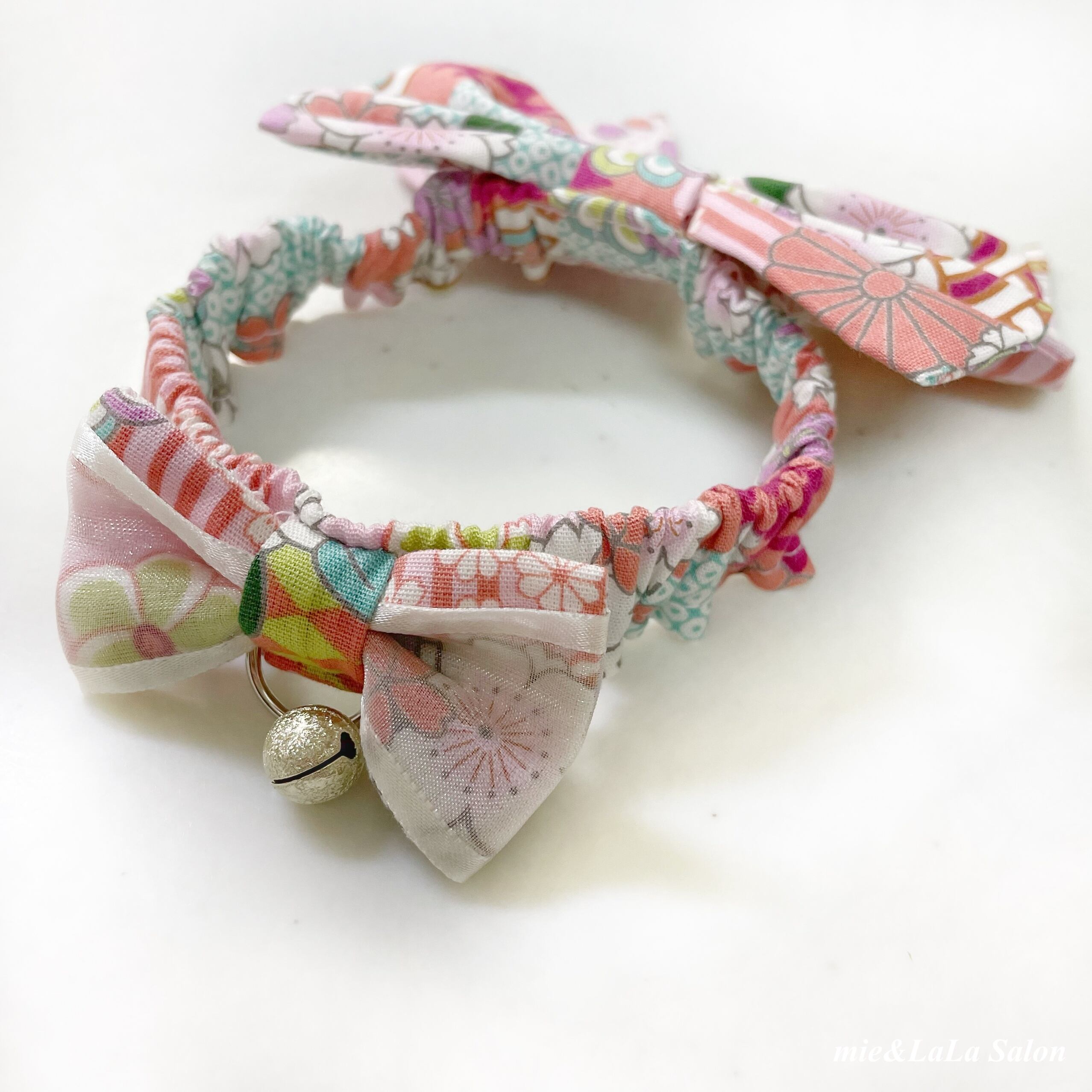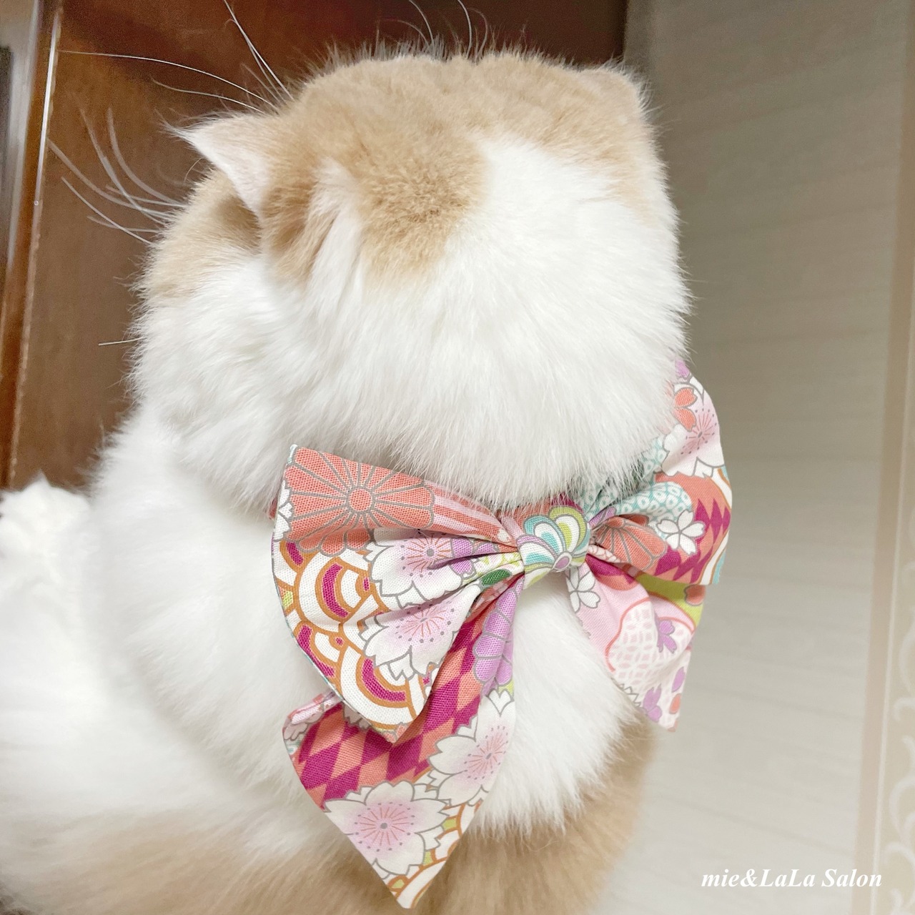 ペット用和柄2wayボウタイシュシュ首輪 淡紅色