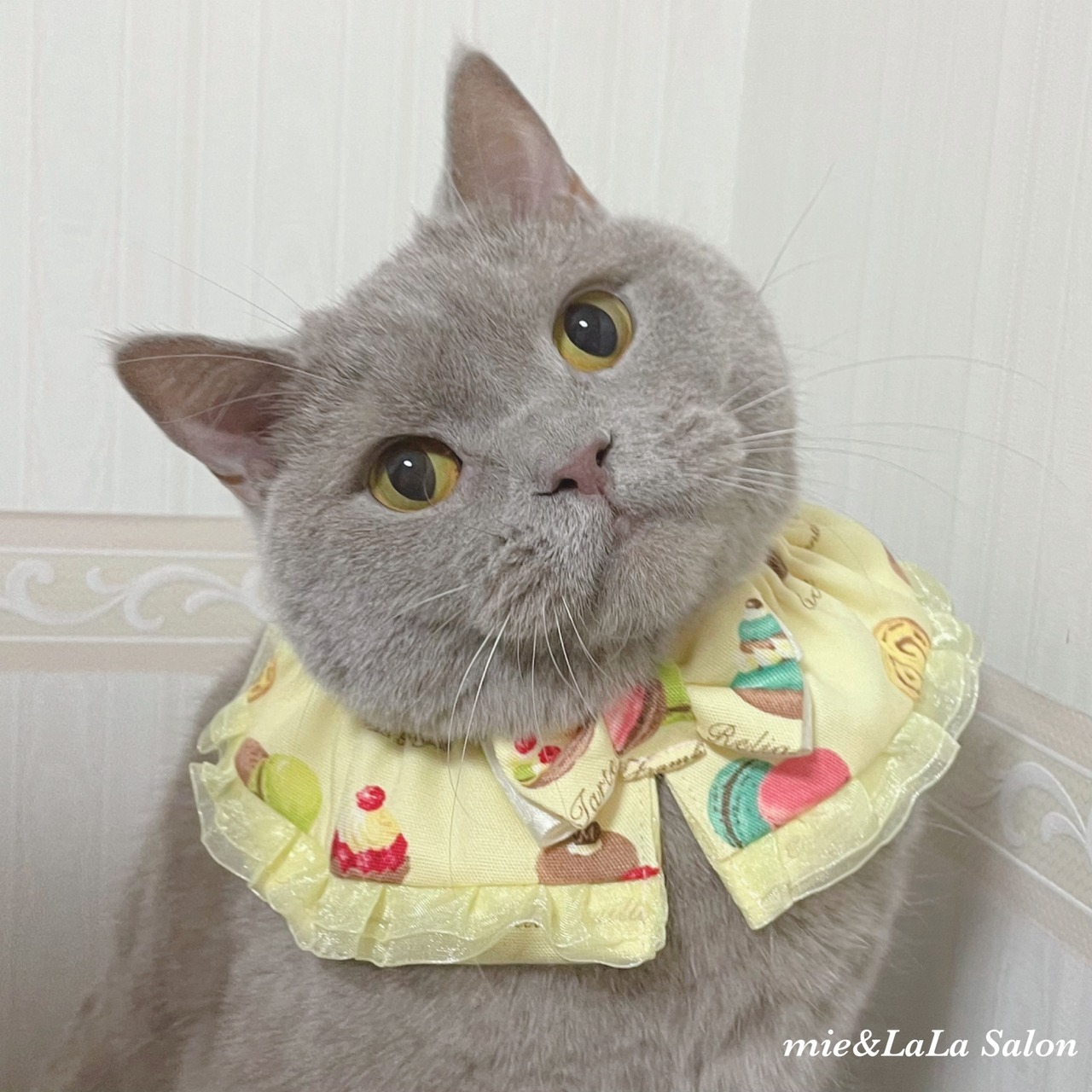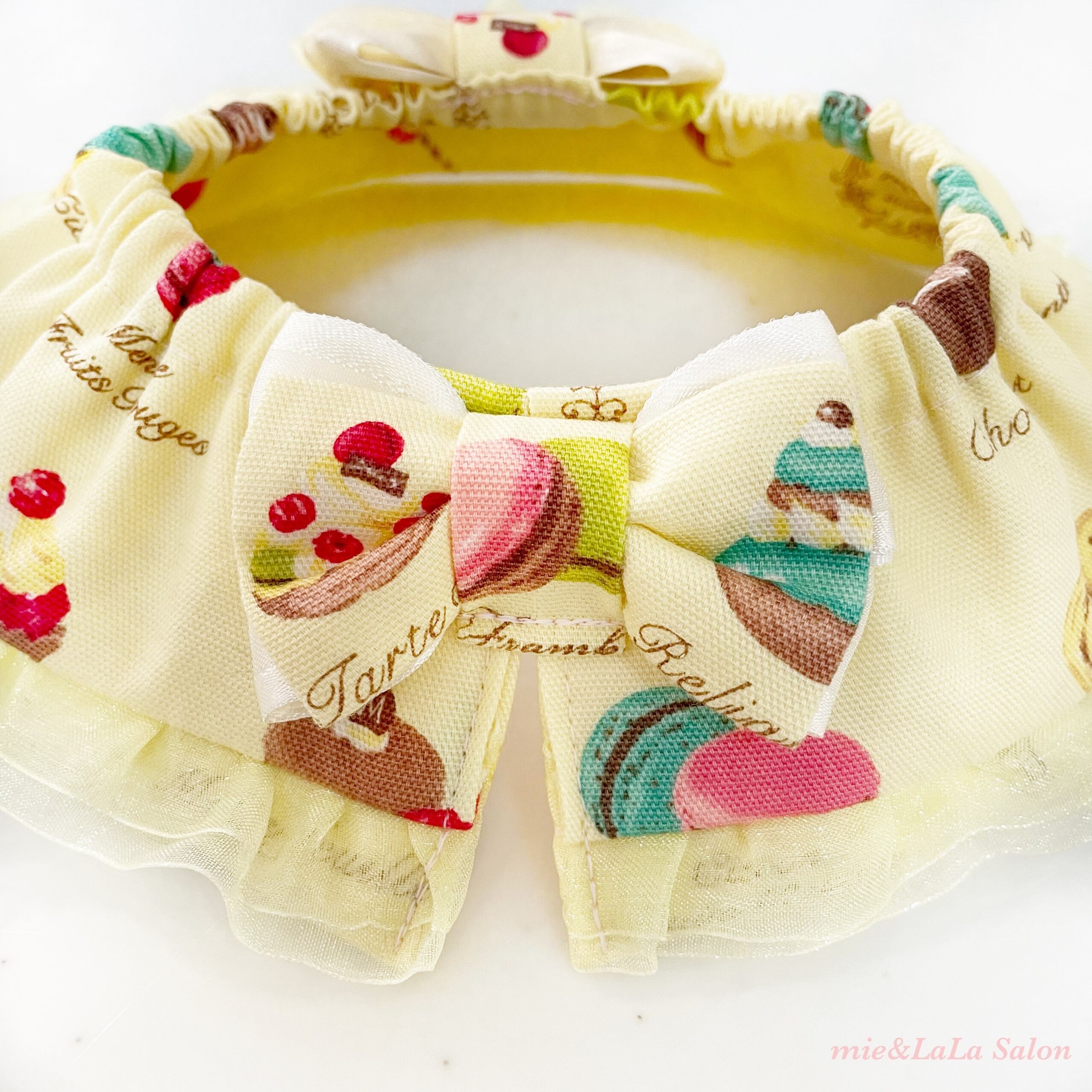 スイーツフリル2way襟シュシュ首輪୨୧ イエロー ペット用 犬 猫 うさぎ