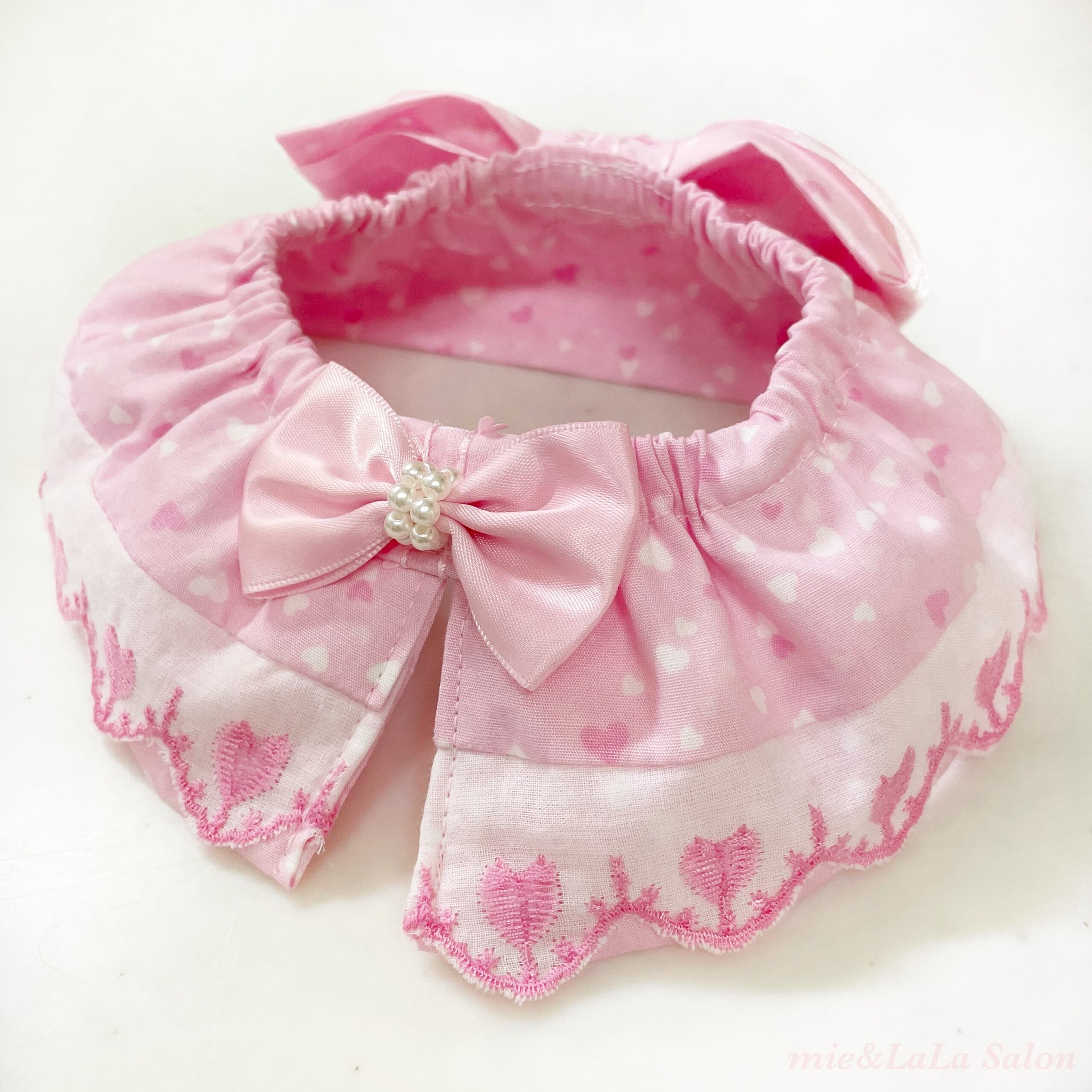 ペット用ハートハートフリル2way襟シュシュ首輪♡