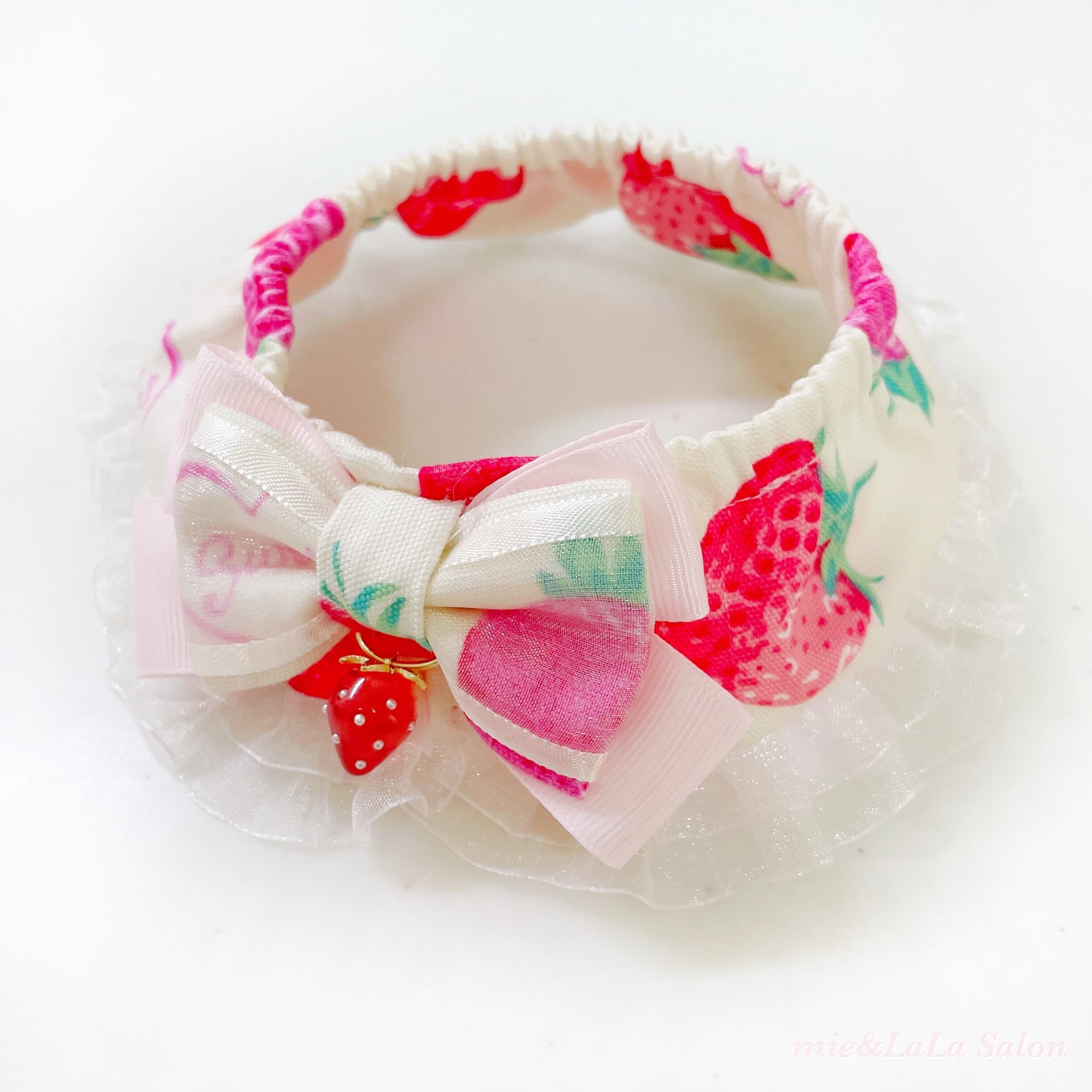 ペット用スウィートいちごフリル襟シュシュ首輪♡