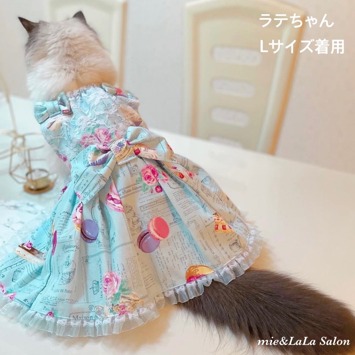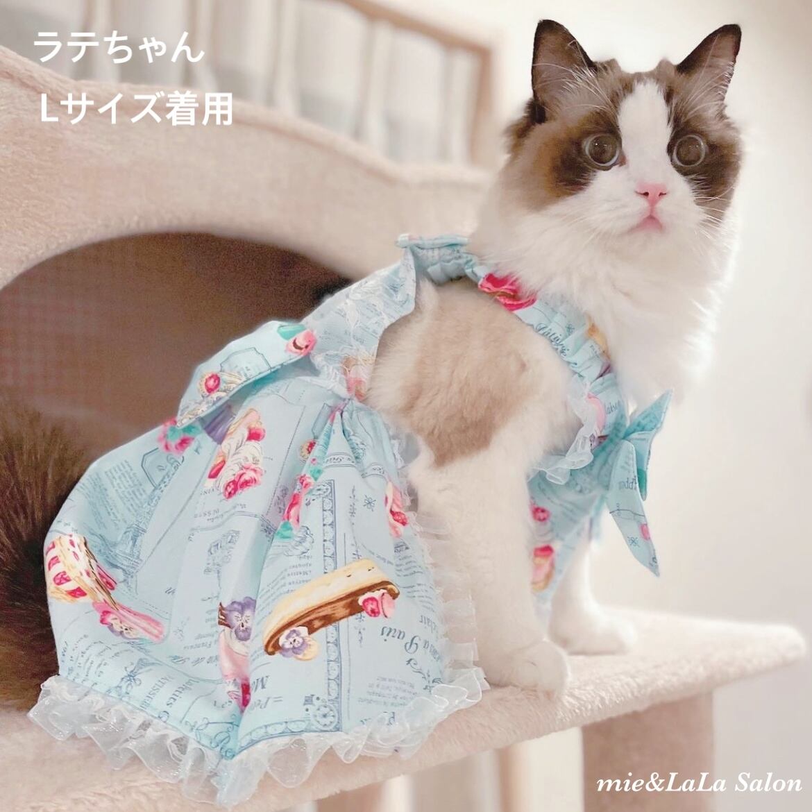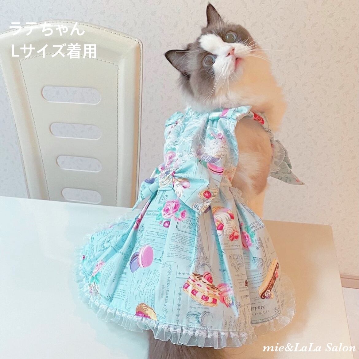 スイーツリボンワンピース୨୧ブルー ペット服 ペットウェア 犬 猫 うさぎ