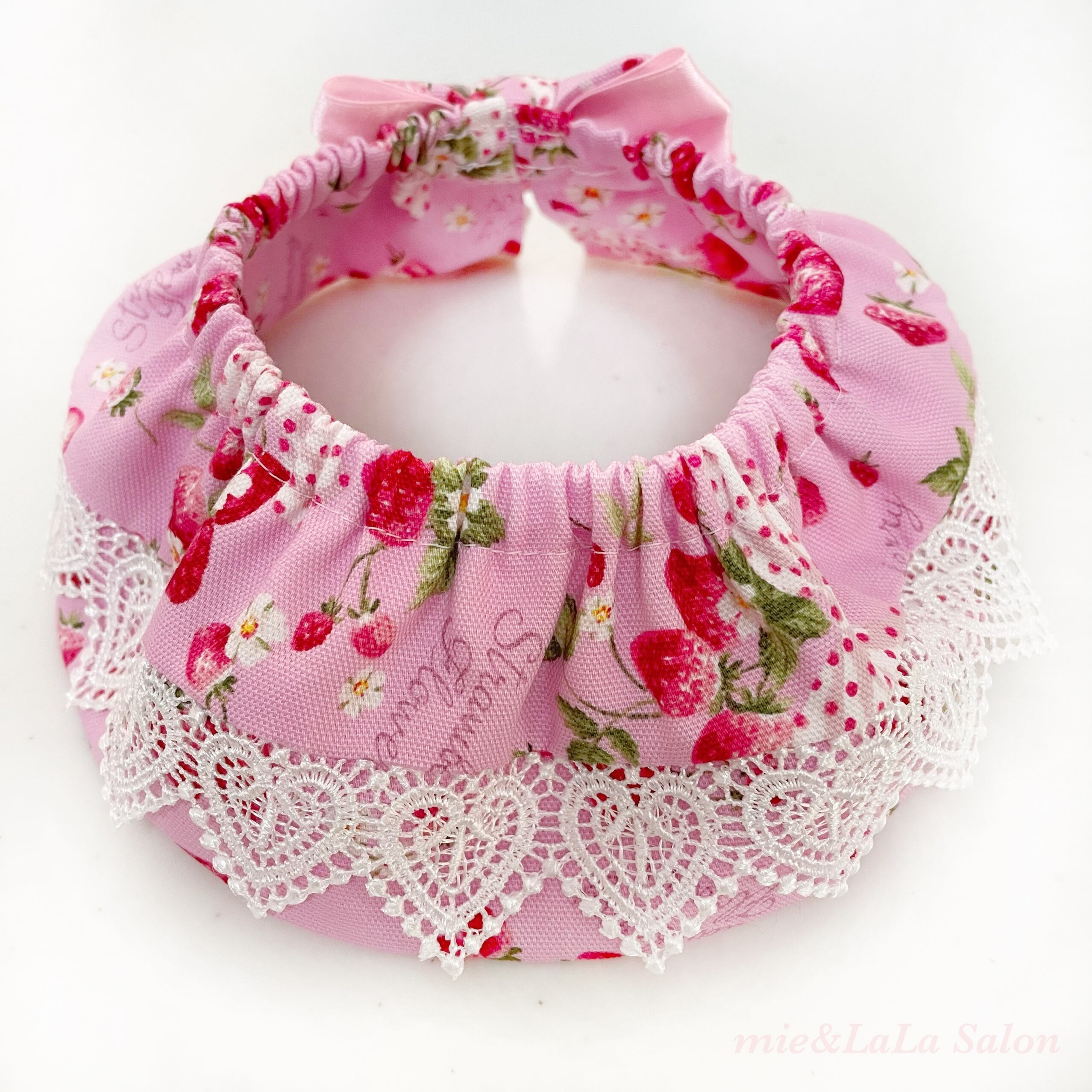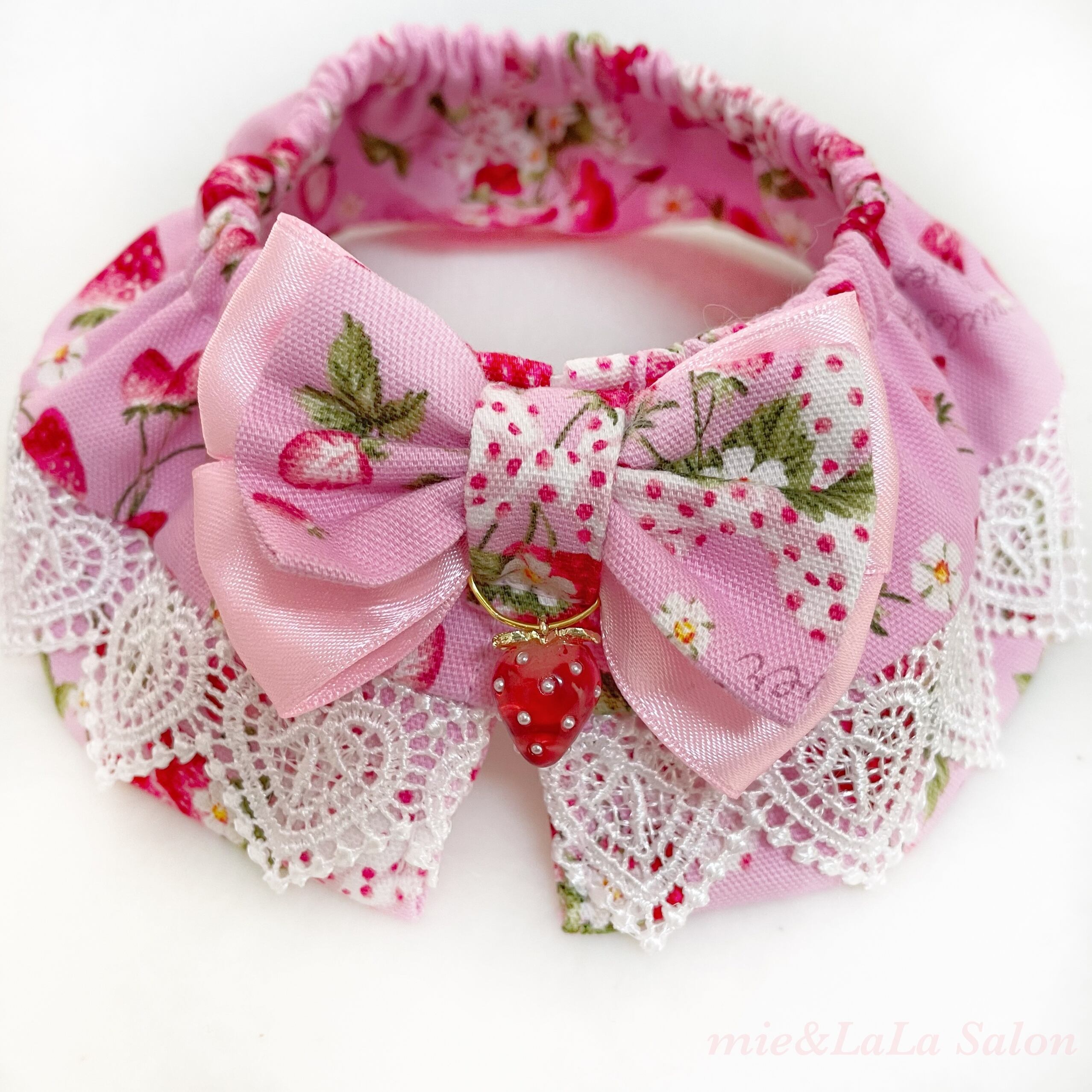 いちごハート襟シュシュ首輪♡ピンク ペット用 犬 猫 うさぎ