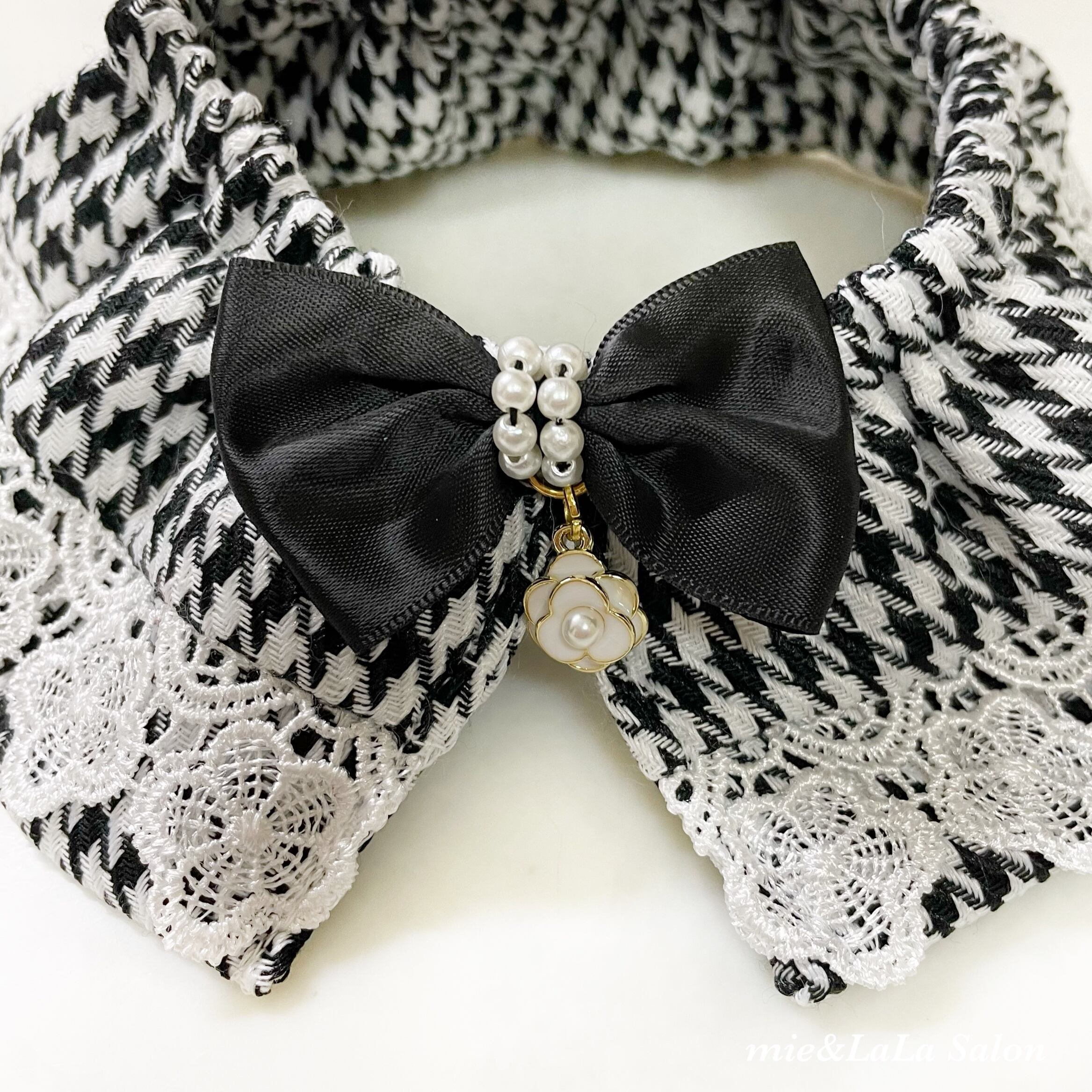 千鳥柄襟シュシュ首輪୨୧ ペット用 犬 猫 うさぎ
