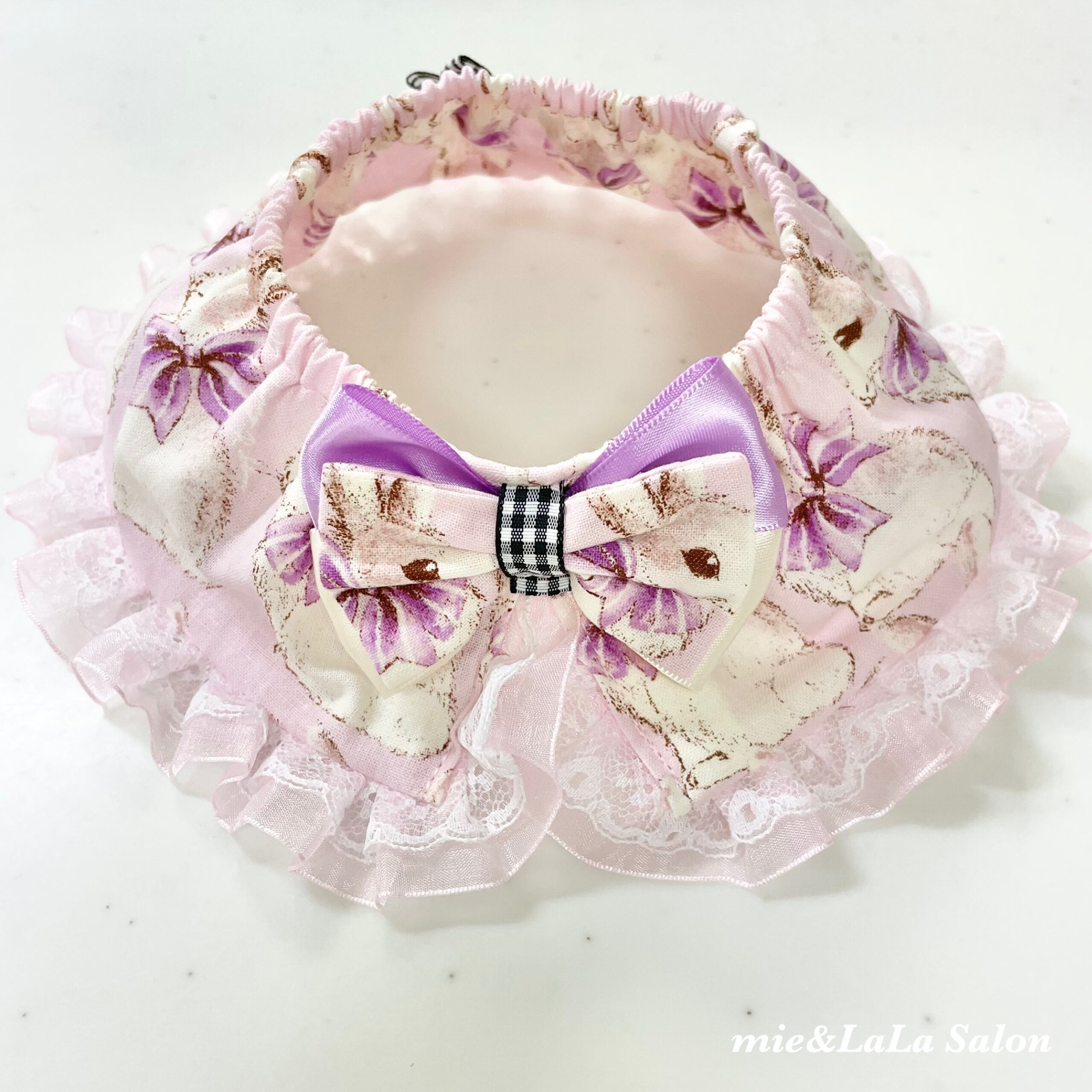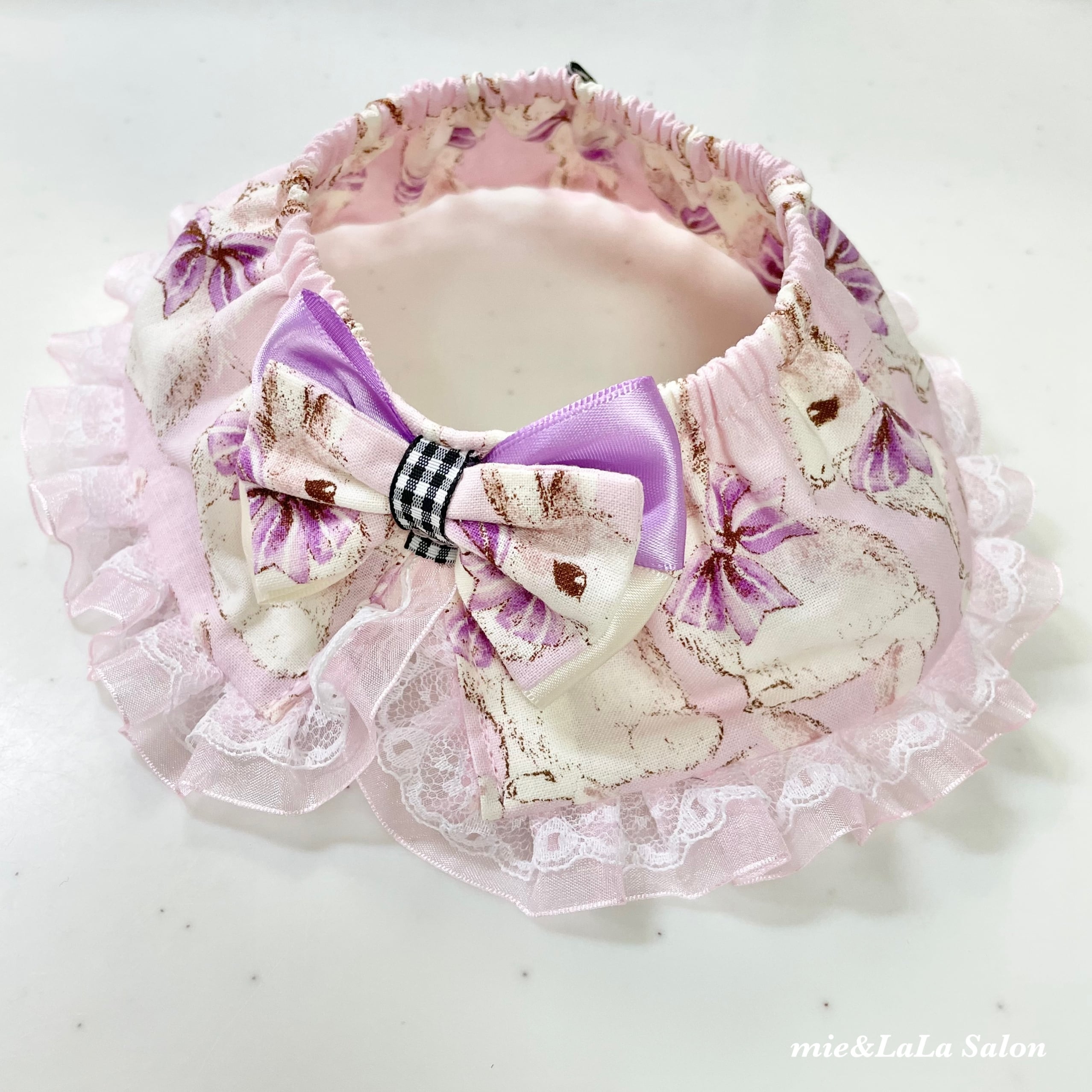 ペット用うさちゃんリボン襟シュシュ首輪ꪔ̤̮ ୨୧ パープル