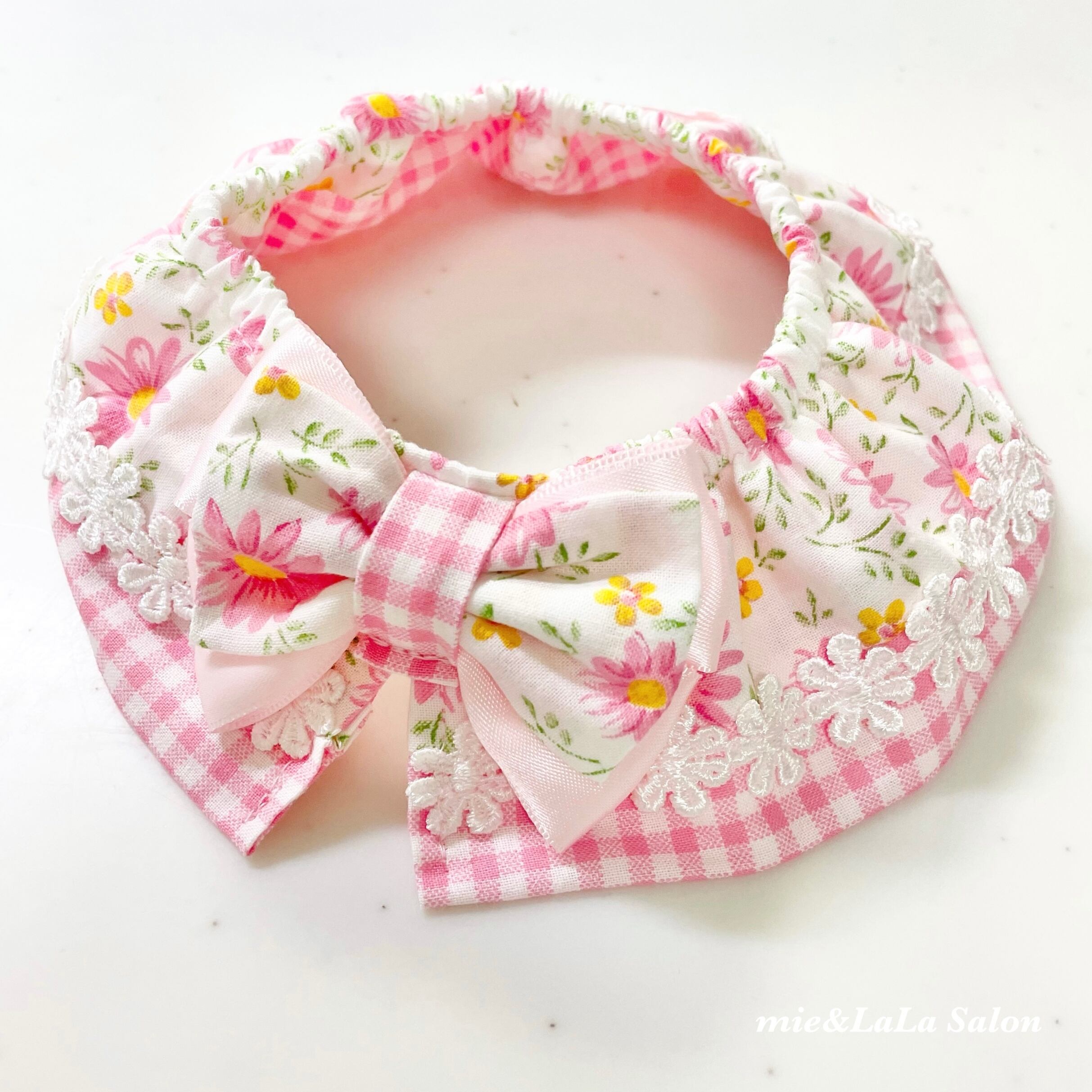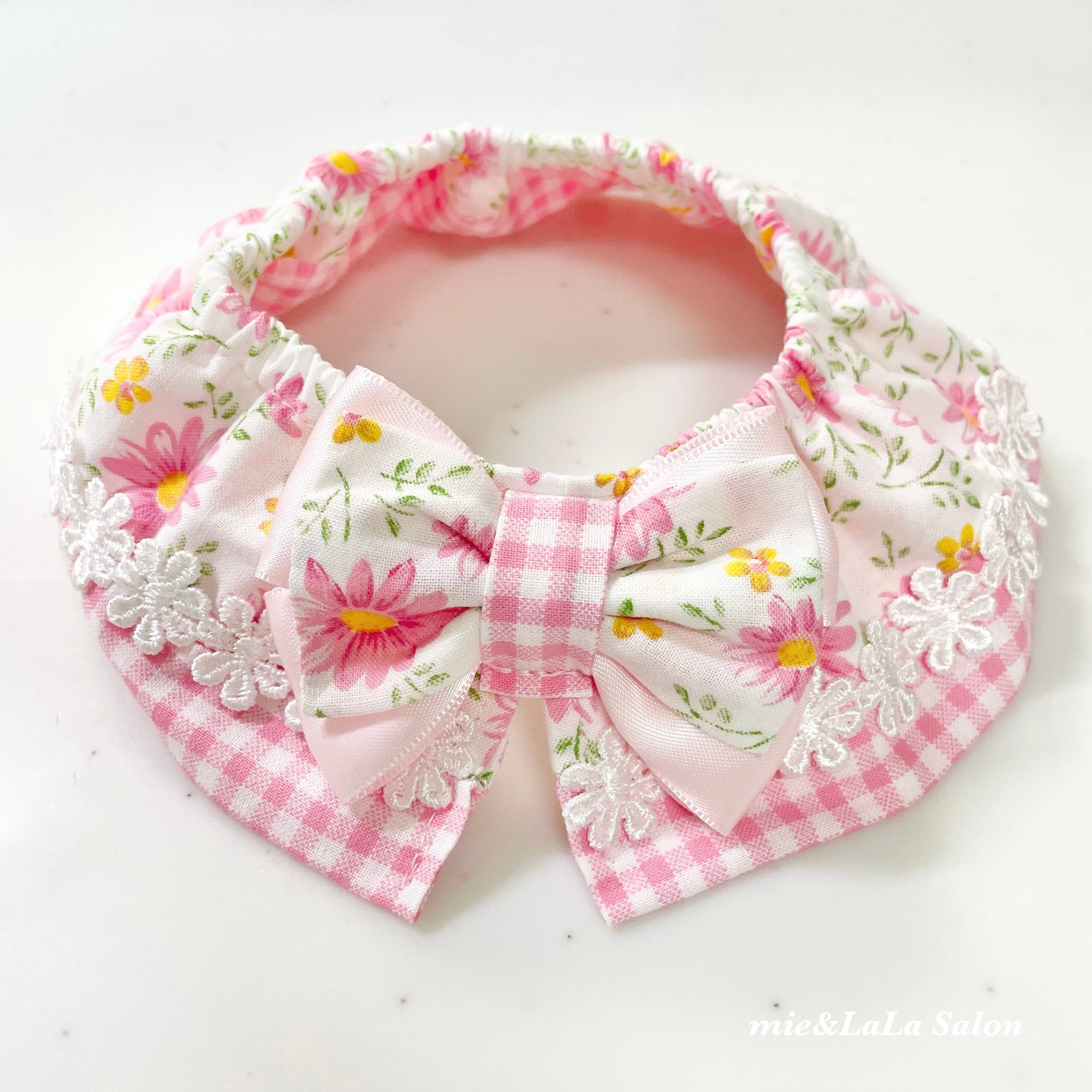デイジーフラワー襟シュシュ首輪 ピンク ペット用 犬 猫 うさぎ