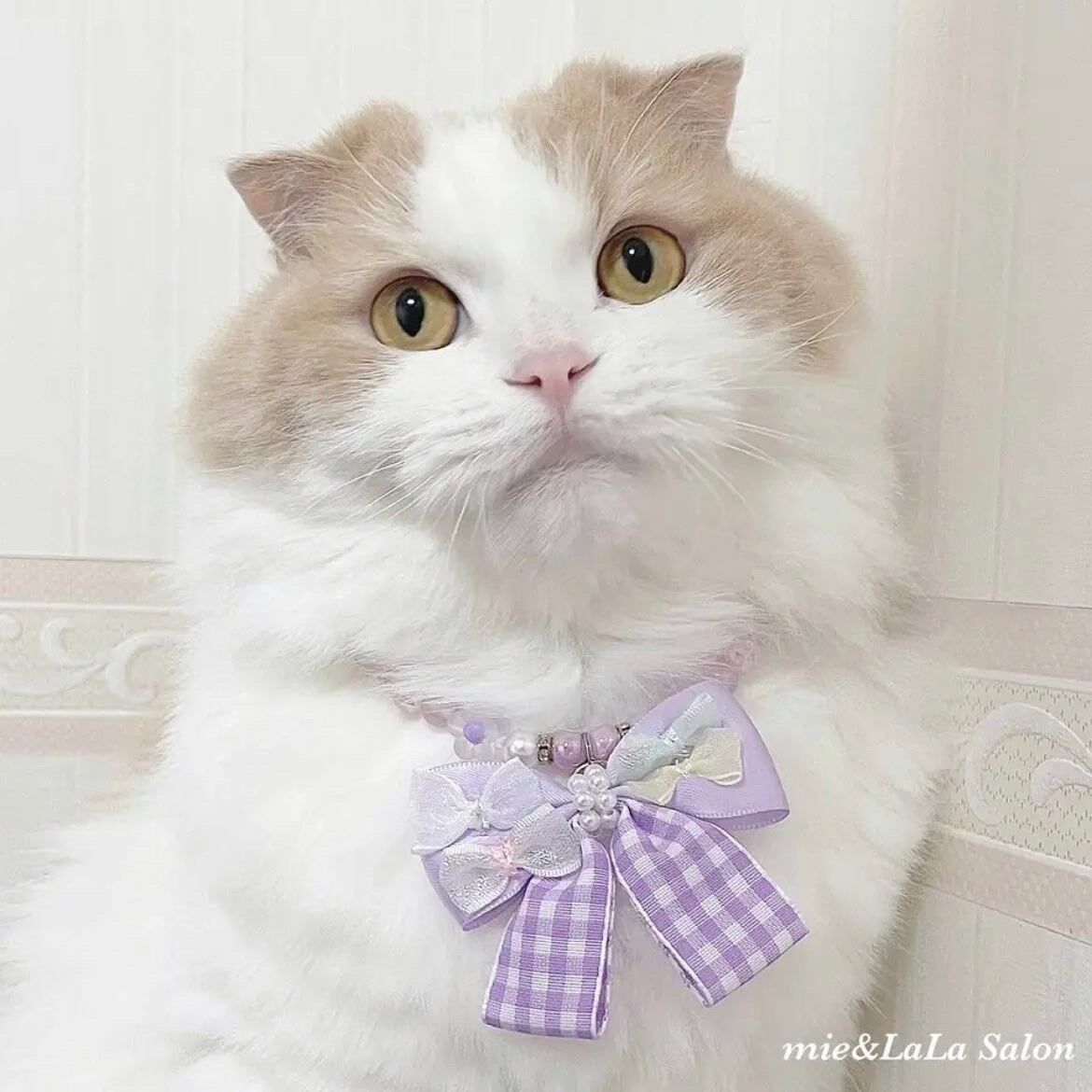 ペット用フェアリーリボンリボンネックレス୨୧パープル(バックリボン付き)