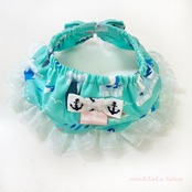 ペット用ペンギンさんフラワー型襟シュシュ首輪୨୧ターコイズブルー
